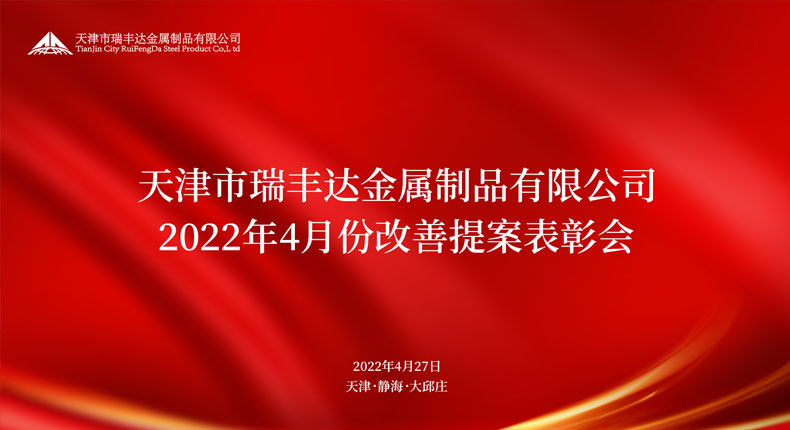 为营造精益求精、不断创新的改善氛围,进一步激发员工参与热情,4月27日,天津市瑞丰达金属制品有限公司4月改善提案表彰会在三楼报告厅举行,公司领导张总、公司中层管理人员、标准化咨询组老师及生产车间全体员工参加本次会议。